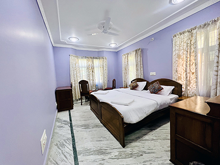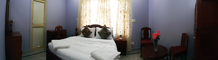 Double occupancy room, with king size bed and attached bathroom with shower. Towels and toiletries included.